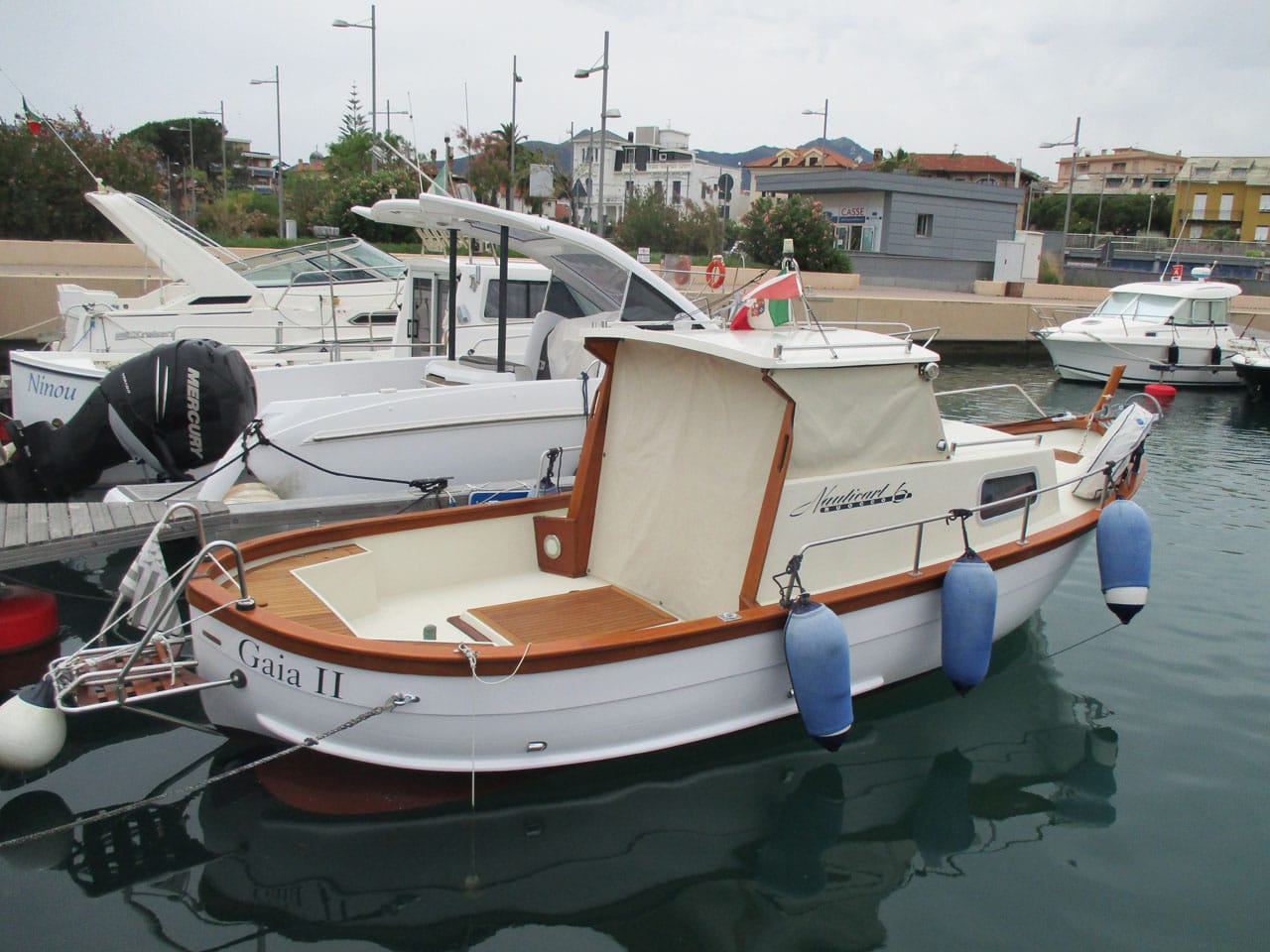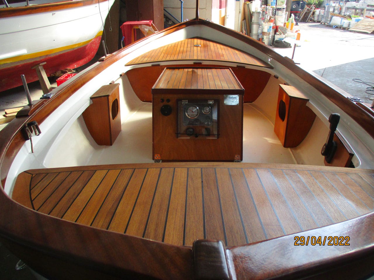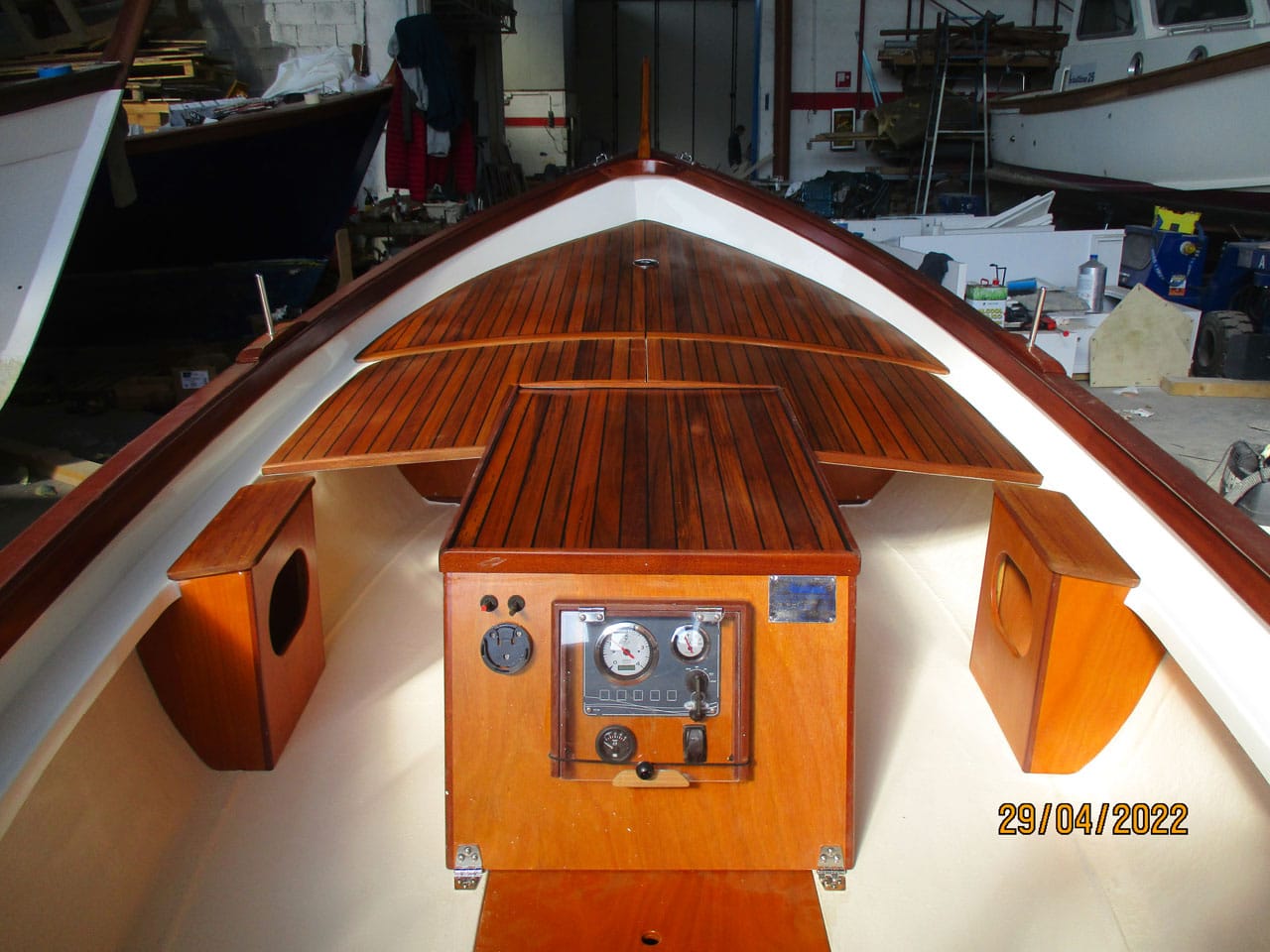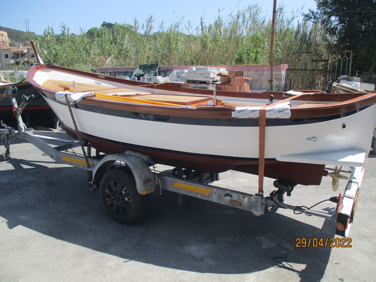 Caratteristiche: lunghezza 5 mt, larghezza 1.92 mt, peso 600 kg compreso motorizzazione, pontatura teak, motorizzata entro bordo 20 hp