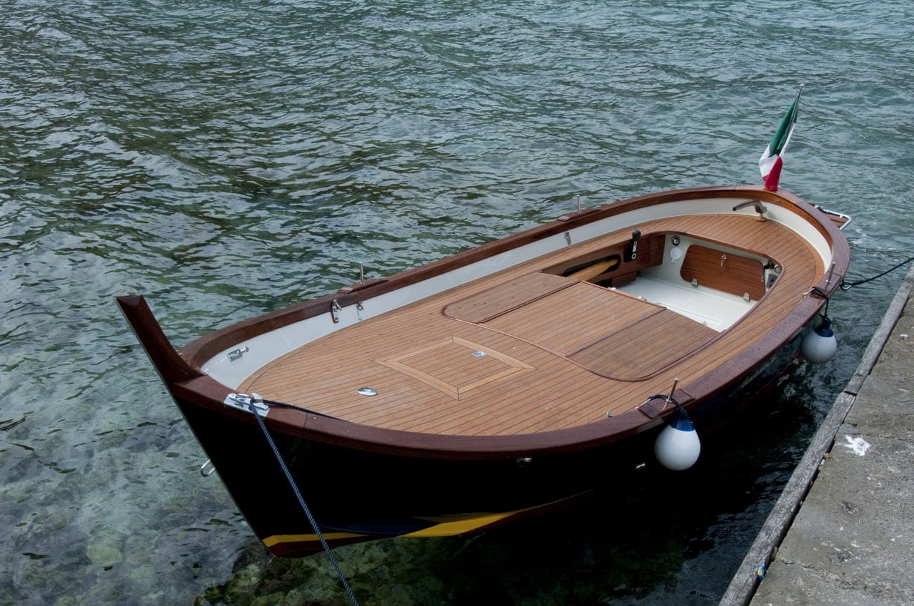 Caratteristiche: lunghezza 5 mt, larghezza 1.92 mt, peso 600 kg compreso motorizzazione, pontatura teak, motorizzata entro bordo 20 hp